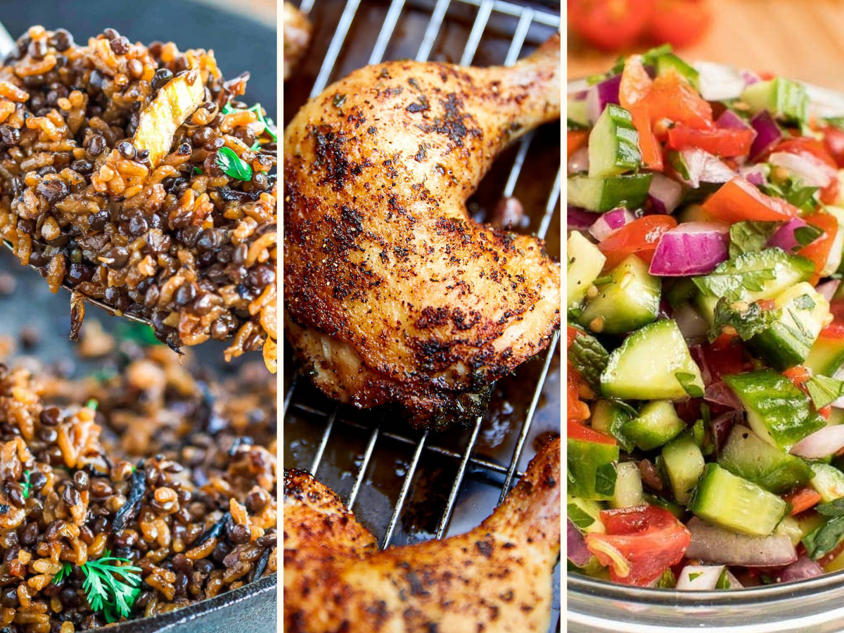 Mujadara, Crispy Chicken Legs Quarters & Sage’s Twist on Israeli Salad